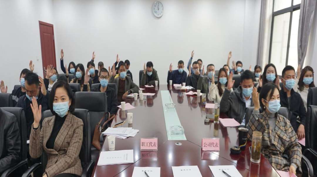 上午10點(diǎn),在莊嚴(yán)的國(guó)歌聲中會(huì)議拉開了序幕。會(huì)上,集團(tuán)公司工會(huì)主席劉冬青同志致開幕詞并作2020年1-10月工會(huì)工作報(bào)告;財(cái)經(jīng)委員蘇麗同志作2020年1-10月工會(huì)經(jīng)費(fèi)收支情況報(bào)告。與會(huì)代表認(rèn)真聽取并逐項(xiàng)審議通過了湖北省再生資源集團(tuán)2020年度《集體合同》、《工資集體協(xié)商專項(xiàng)集體合同》、《女職工權(quán)益保護(hù)專項(xiàng)集體合同》、《勞動(dòng)安全衛(wèi)生專項(xiàng)集體合同》,工會(huì)主席現(xiàn)場(chǎng)與行政方首席代表簽署四項(xiàng)合同。