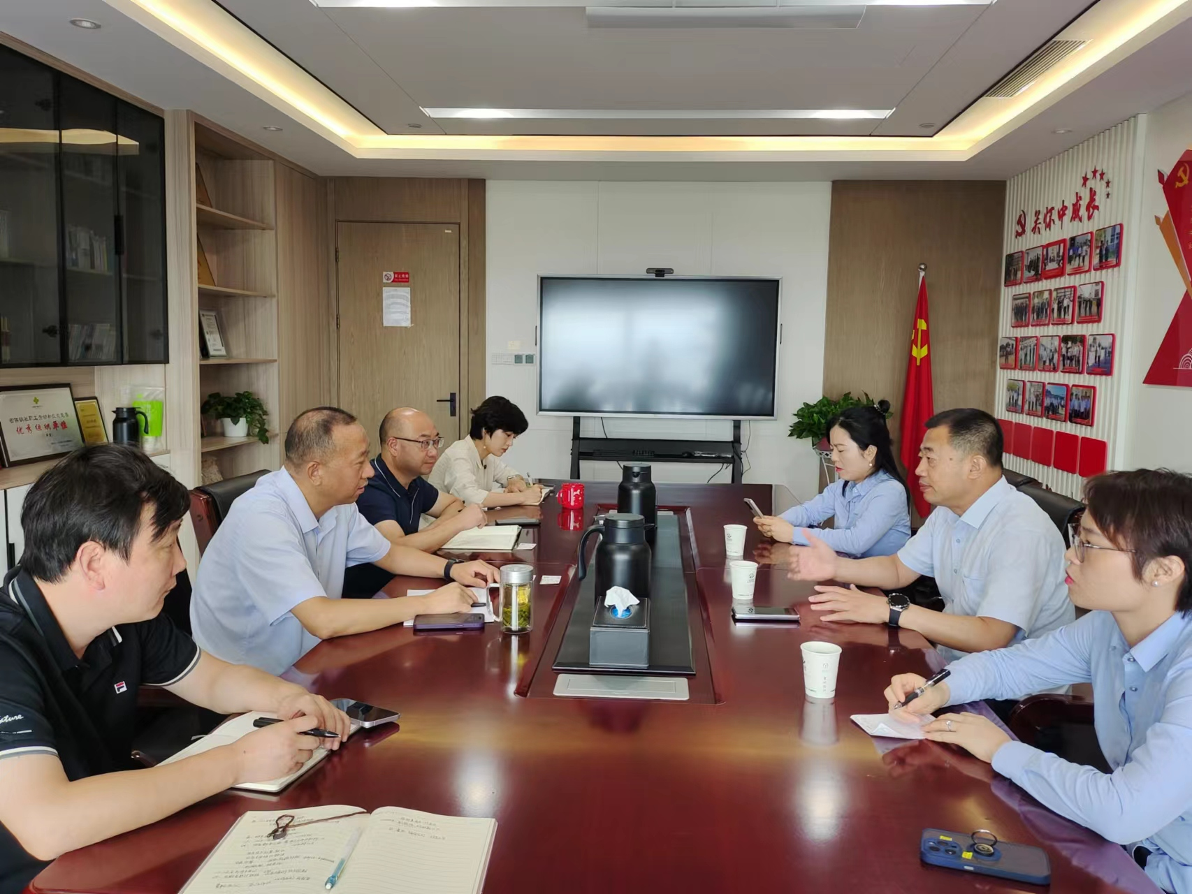 7月14日上午,格林美股份有限公司董事、常務副總經理周波一行三人到訪再生集團,集團公司黨總支書記、董事長王建強熱情接待并進行了工作交流座談。